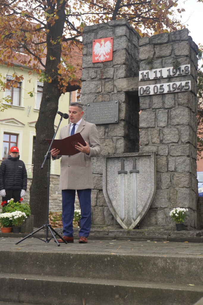 Tradycyjnie Dyrektor Ośrodka Kultury Konrad Tkaczyk powitał przybyłe delegacje i zgromadzonych mieszkańców. Po czym zaprosił do wspólnego odśpiewania hymnu państwowego. Następnie głos zabrał Burmistrz Miasta Robert Łężny, a uczniowie klasy III b ze Szkoły Podstawowej w Zawidowie, pod opieką wychowawczyni pani Agnieszki Kosarczyn, zaprezentowali program artystyczny, w którym słowem, śpiewem i tańcem przybliżyli najważniejsze momenty historii Polski.