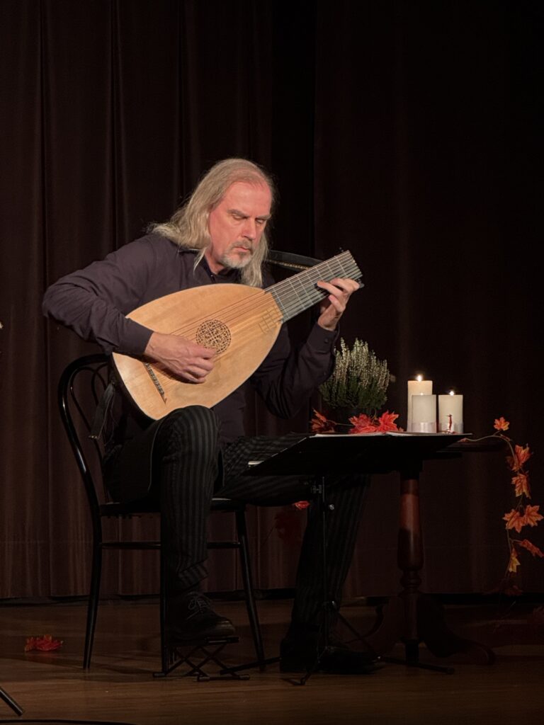 Spotkanie rozpoczęliśmy występem Franka Pschichholza, muzyka i badacza muzyki dawnej specjalizującego się w grze na instrumentach z epoki renesansu i baroku takich jak lutnia. Dźwiękami tego pięknego instrumentu wprowadziliśmy w czasy Jakuba Böhme.