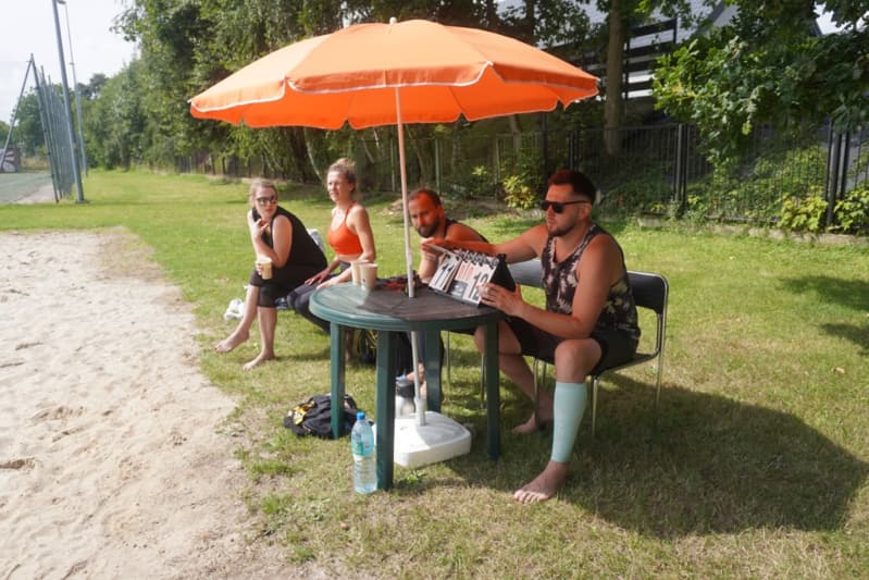 Tradycyjnie dla zawodników i kibiców przygotowaliśmy mini bar z kawą, świeżymi owocami oraz kiełbaskami z grilla, które idealnie dopełniły plażową atmosferę.