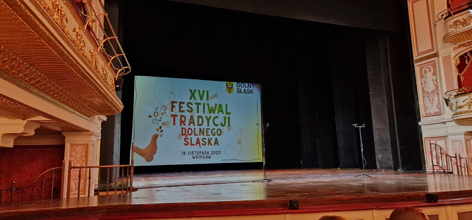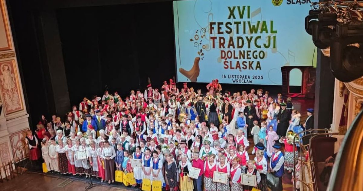 W minioną niedziele /16.11./ w przepięknej Operze Wrocławskiej nasz Zespół Jarzębina został zaproszony przez Urząd Marszałkowski Województwa Dolnośląskiego na XVI Festiwal Tradycji Dolnego Śląska. Z rąk pani Natalii Gołąb Członkini Zarządu Województwa Dolnośląskiego oraz pana Radosława Zysnarskiego Pełnomocnika Marszałka ds. aktywizacji lokalnych zespół otrzymał pamiątkowy grawerton z okazji obchodzonego w tym roku jubileuszu.