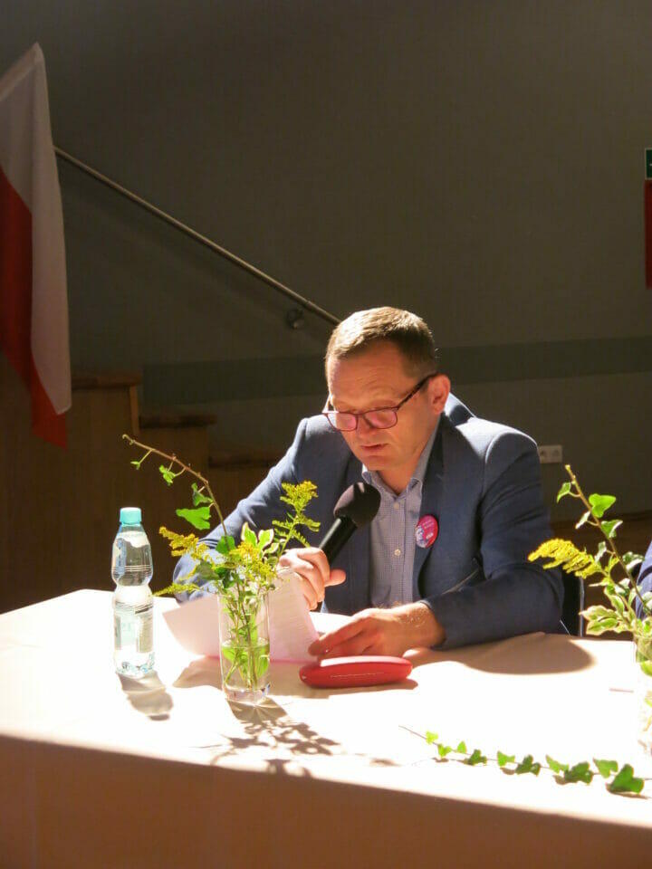 Narodowe Czytanie rozpoczęło się o godzinie 12.00. Wszystkich czytających oraz tych, którzy przyszli posłuchać powitał dyrektor Ośrodka Kultury, Pan Konrad Tkaczyk.