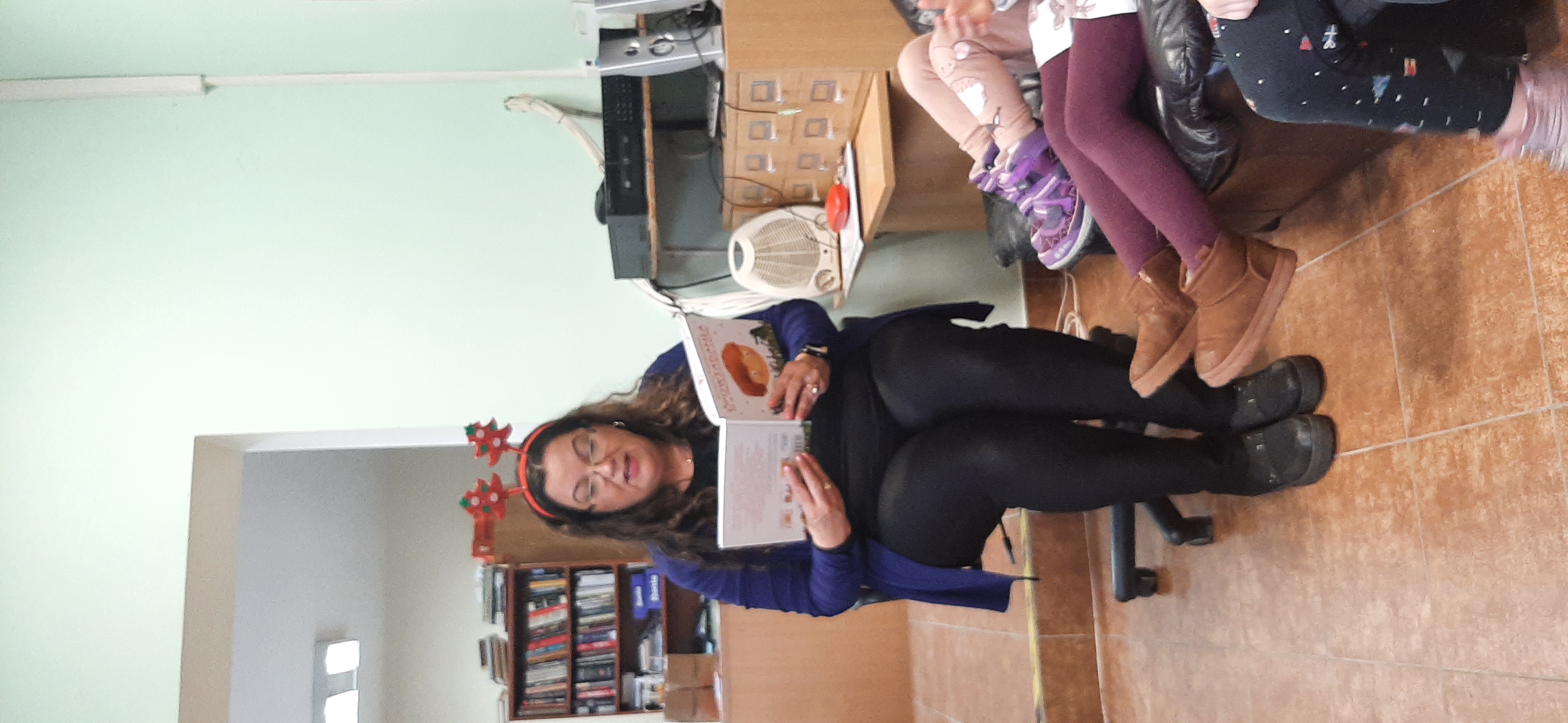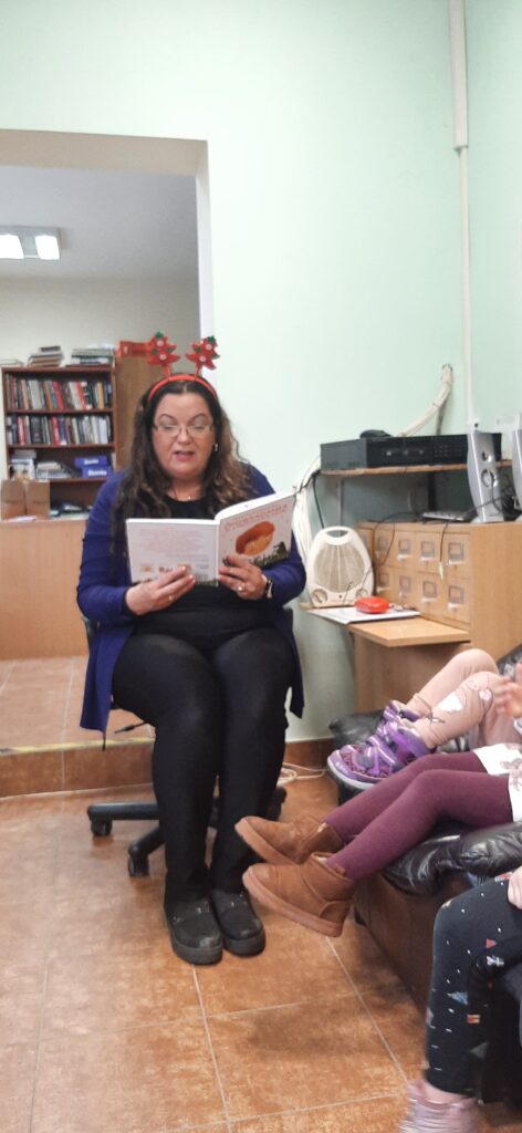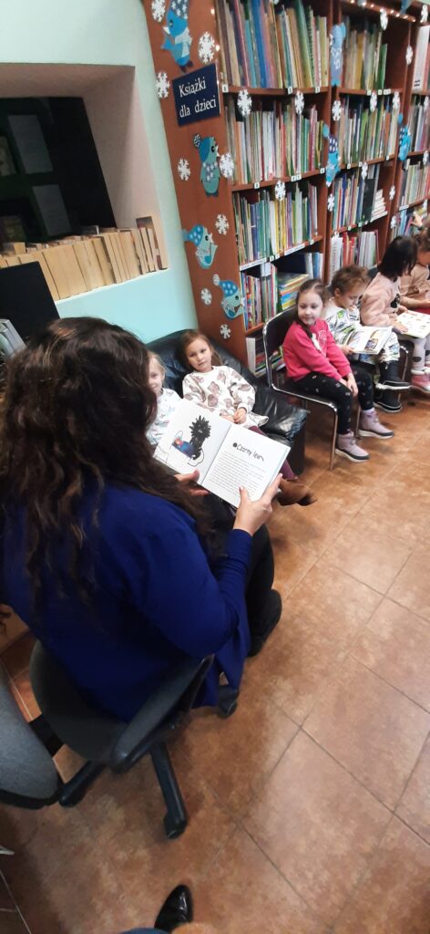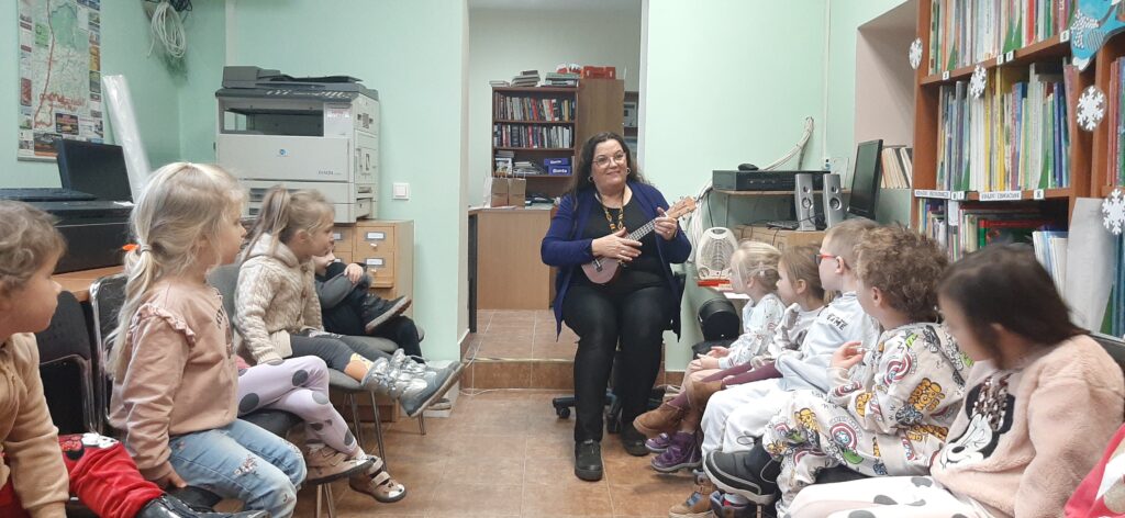 W trakcie spotkania Pani Agnieszka przeczytała dzieciom bajkę Renaty Piątkowskiej „Czarny lew” oraz zadawała zagadki związane z bajkami. Na koniec przy dźwiękach ukulele dzieci zaśpiewały hiszpańską kolędę „Feliz Navidad” oraz otrzymały zakładkę do książki i słodki upominek![]()