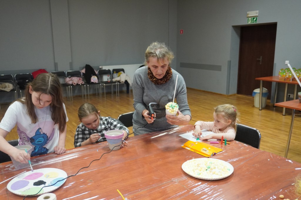 Już po raz drugi odbyły się wielkanocne warsztaty i jesteśmy pewni, że zagoszczą na stałe w przedświątecznym grafiku Ośrodka Kultury. Było dużo śmiechu, radości dzieciaków… i dorosłych też :D, a co najważniejsze był to wspólnie spędzony czas przy tworzeniu świątecznych dekoracji. Nasi uczestnicy okazali się niezwykle pomysłowi i kreatywni, a każda z ozdób była naprawdę piękna i wyjątkowa. Na zakończenie tradycyjna wspólna fotografia i słodki upominek:)
