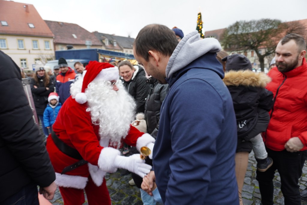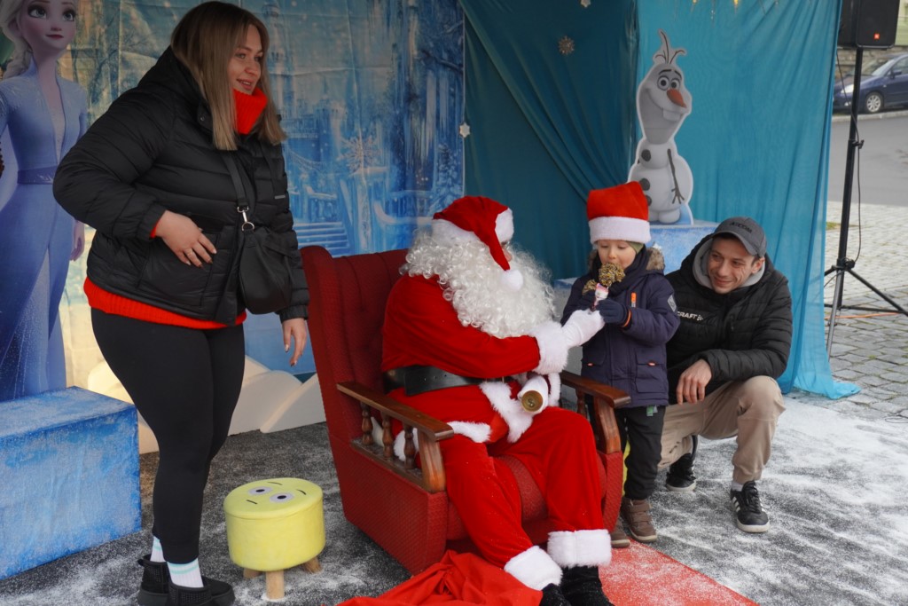 O godzinie 14:00 rozpoczęło się gorączkowe wypatrywanie Mikusia, gdyż zostawił w zawidowskim rynku wielki czerwony worek z prezentami i gdzieś zniknął. Okazało się, że odwiedzał najmłodszych mieszkańców naszego przygranicznego miasteczka i przy ciepłym kakao i ciasteczku troszeczkę się gdzieś zasiedział![]()