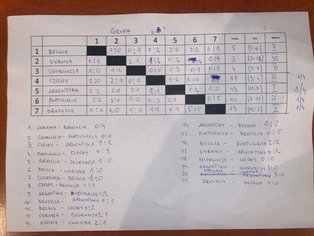 Pierwsze miejsce zdobyli bracia Alan i Gabriel Nadolny grając, uwaga – reprezentacją Polski! W wielkim finale gładko pokonali Argentynę Piotra Szczepańskiego i Damiana Stankowskiego w rozmiarach 3:0. W meczu o trzecie miejsce Brazylijczycy (Kamil i Przemek Kleszczyńscy) pokonali 1:0 Włochów Marcina Michalkiewicza i Bartka Papierniaka![]()