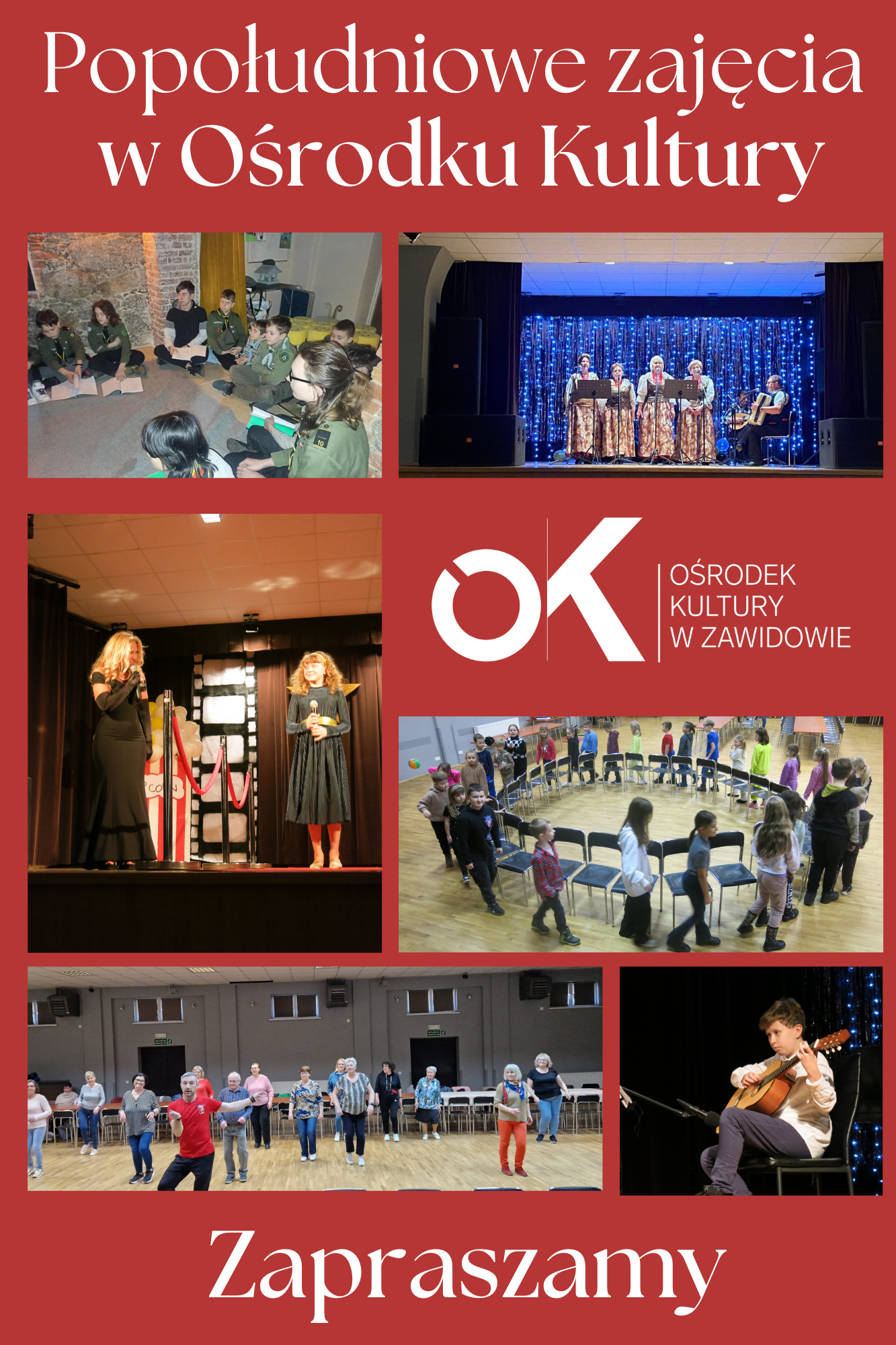 Wrzucamy drugą porcję zajęć popołudniowych w Ośrodku Kultury. Są to zajęcia prowadzone przez instruktorów, z którymi współpracujemy od wielu lat.